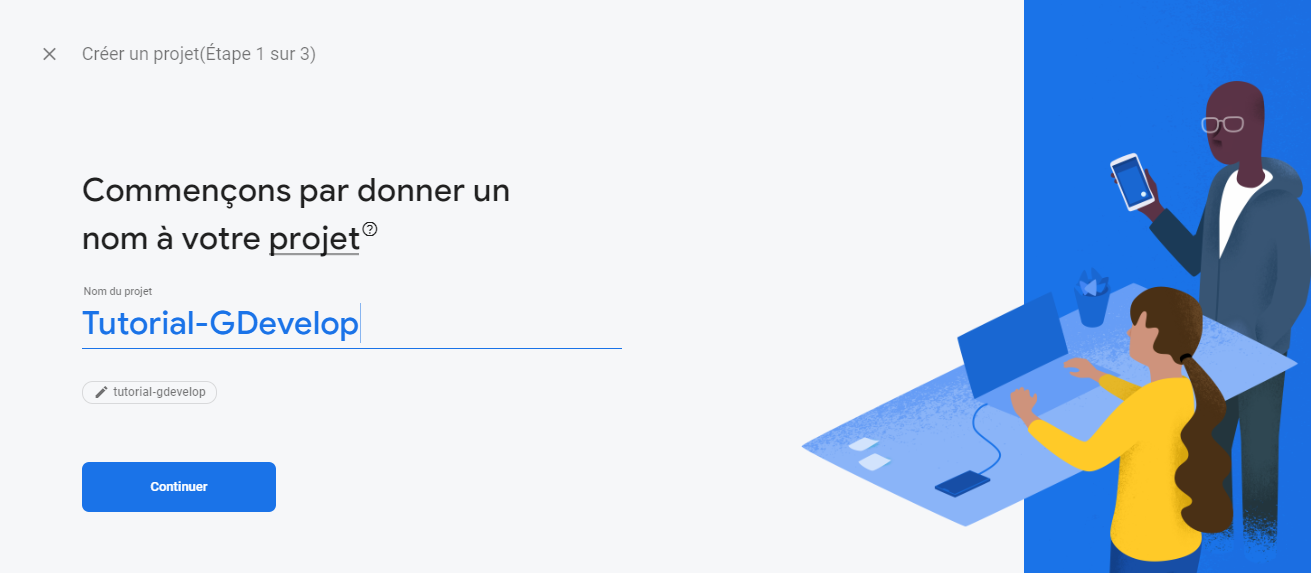 Nomme ton projet comme tu veux. Dans le cadre de cet article, je vais nommer mon projet Tutorial-GDevelop.
