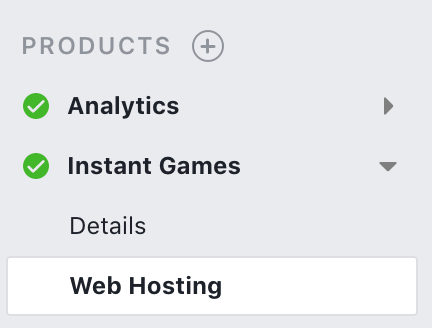 Retournez sur Facebook Developers et choisissez Hébergement Web dans le menu Instant Games :