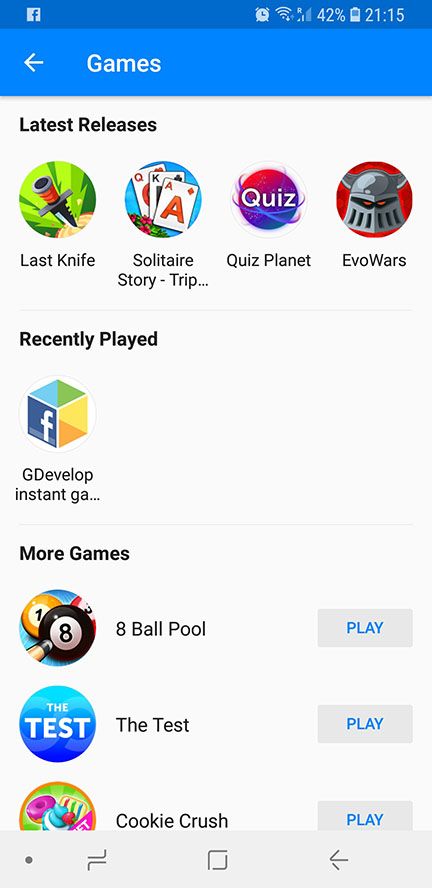 et choisissez Instant Games. Votre application est maintenant prête à télécharger le jeu !