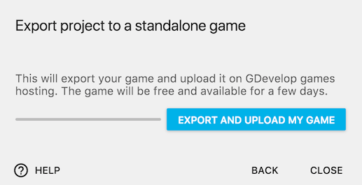 A partir de GDevelop, vous pouvez exporter votre jeu et le publier sur le web, en utilisant les serveurs d'hébergement de GDevelop. Cet hébergement est gratuit et votre jeu sera disponible pour quelques jours !