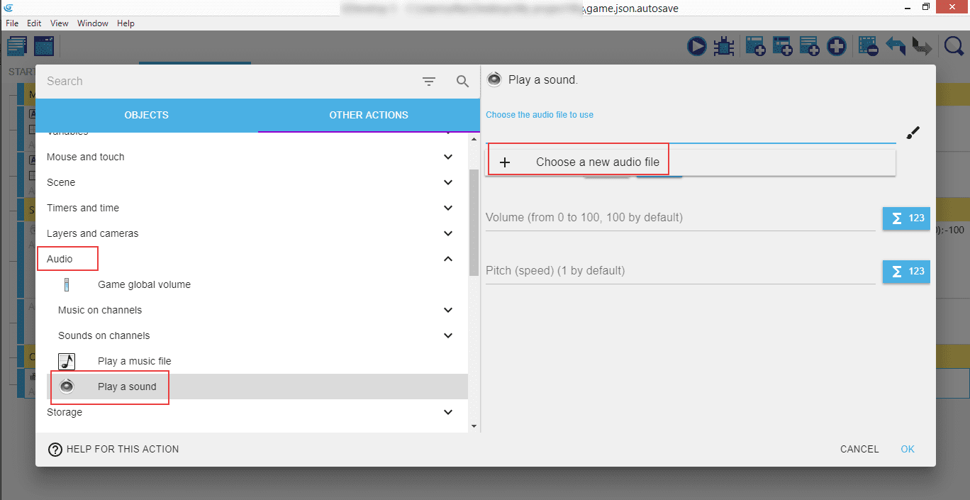 Recherchez Audio dans le menu déroulant qui s'ouvre, optez pour Play a sound (Jouer un son). Dans le panneau de droite, cliquez sur Choose a new audio file (Choisir un nouveau fichier audio).