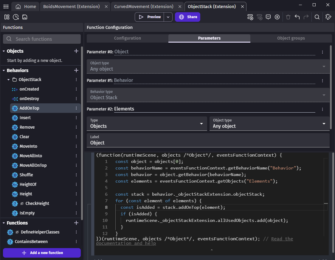 - The Object stack extension exposes conditions that pick object instances according to their position in a stack.