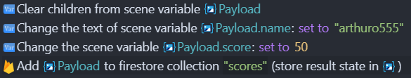 The first step when making a project that interacts with an online database is to decide the shape in which the data is stored. Firebase is good at querying (filtering by data) documents in collections, so we will put each score as a document in a collection named "scores". Each document will have to be a structure variable with this shape: