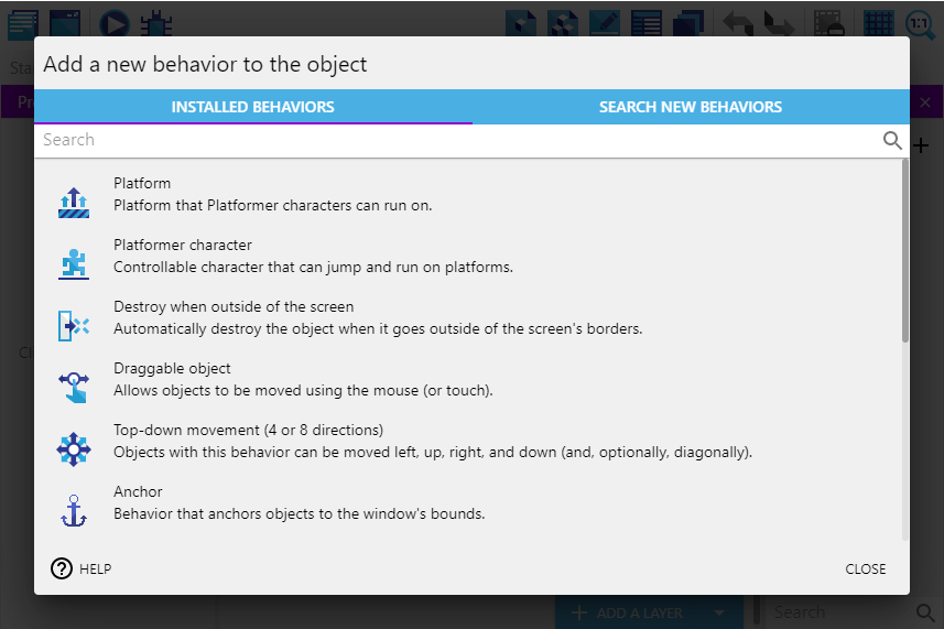 GDevelopの_ビヘイビア_は、わずか数クリックでオブジェクトに大幅な機能を追加できます。