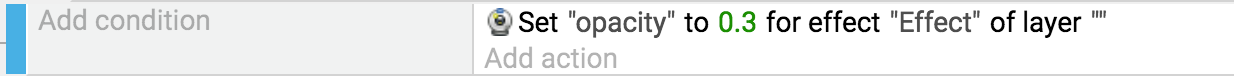 下図は、ベースレイヤーの「Effect」という名前のエフェクトの不透明度を変更するアクションの例です。